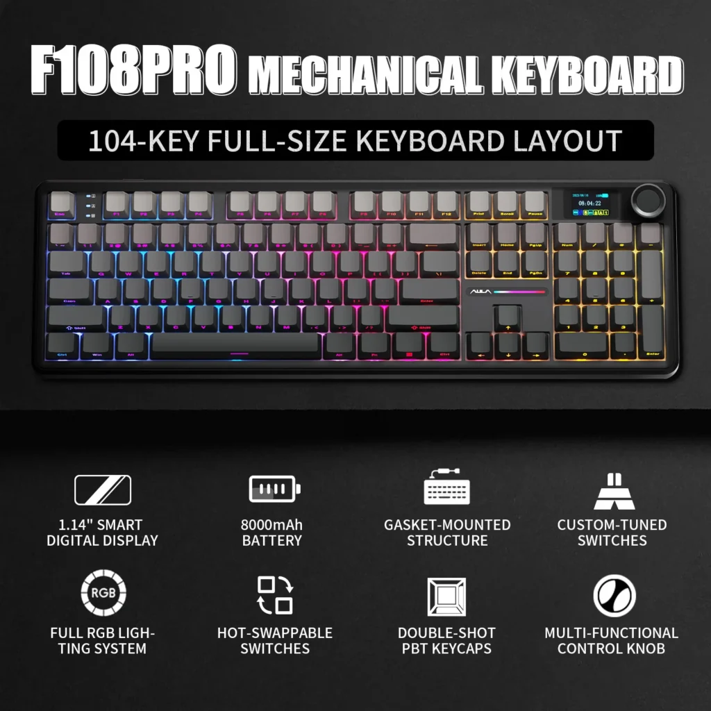 Introducing the AULA F108 PRO, the ultimate mechanical keyboard designed for gamers and professionals alike. Featuring a stunning RGB backlight, wireless Bluetooth connectivity, and a 100% layout with Hifi switches, this keyboard is your key to victory! Don’t miss out on this exclusive offer—get it now for just $58.27! Limited stock available!